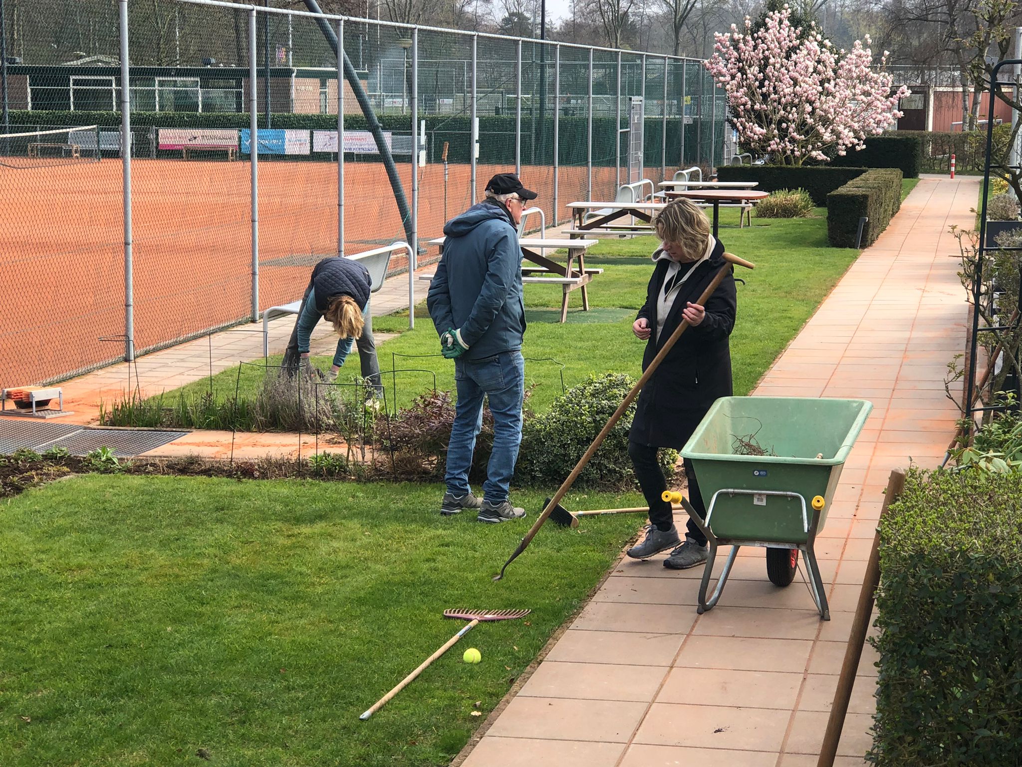 Afgelopen zaterdag 21 maart stond onze voorjaarsklussendag weer op de planning! Helaas was de opkomst wat magerderer dan vorige jaren maar de 11 leden díe er waren hebben weer heel goed werkt verricht. Het tennispark en het clubhuis zijn nu weer zomerklaar (en daar hebben we zondag tijdens het openingstoernooi yoch maar even mooi van mogen profiteren!). In de middag zorgde Nicole natuurlijk voor een smakelijke lunch.